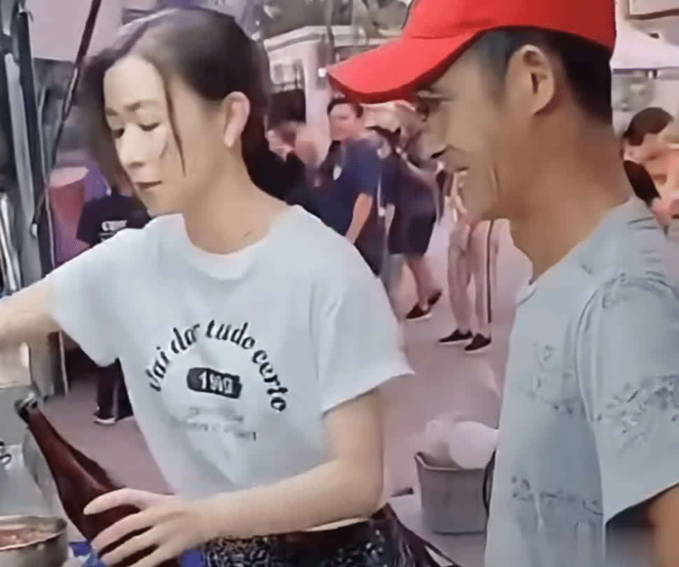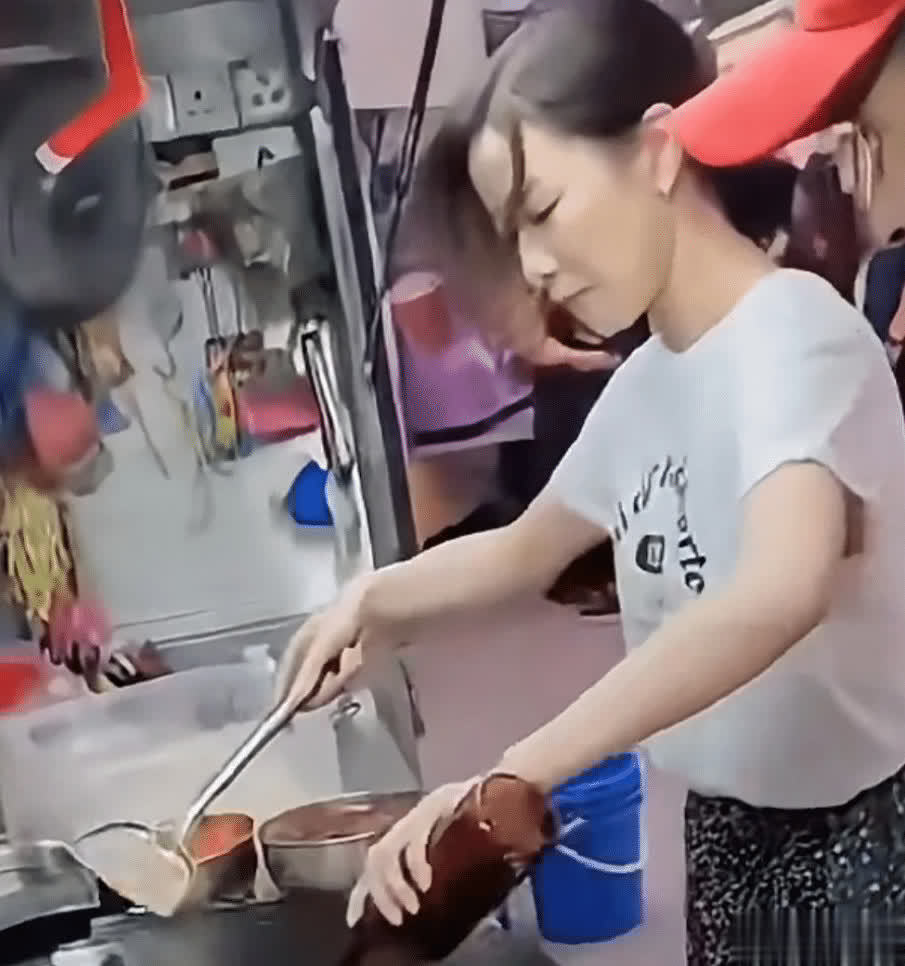 佘诗曼这是在拍什么呀,在路边上演炒米粉技术,没想到以前围着灶台的小女孩成名后还在灶台前,穿着简单的T恤,随意挽着头发,不管名气多大,永远那么接地气。
